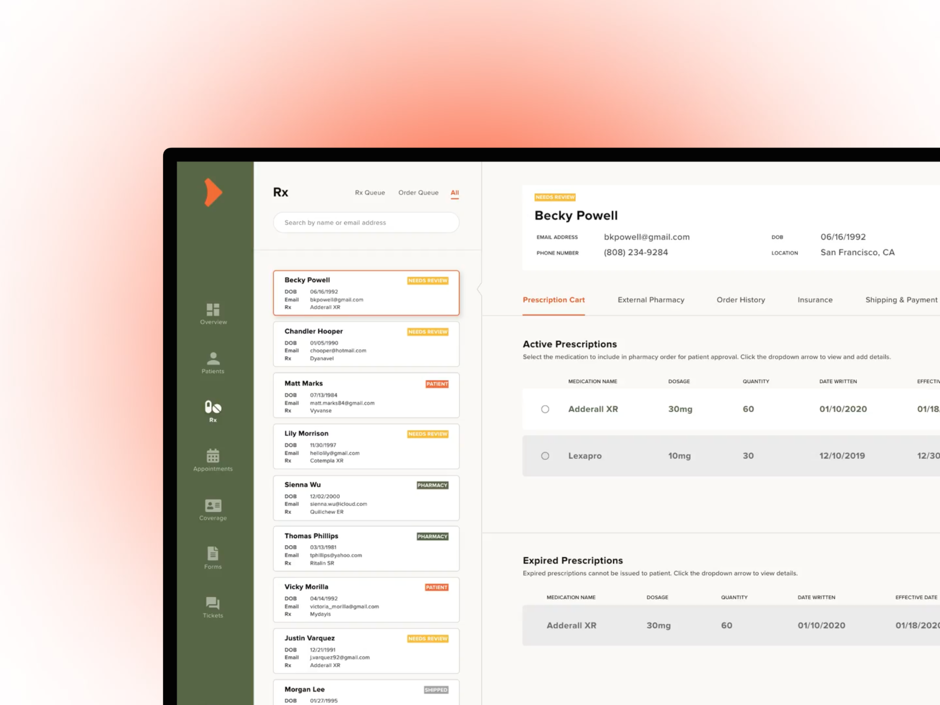 Initiated and led design for a HIPAA-compliant internal platform connecting provider notes, patient data, insurance, and pharmacy fulfillment — defining a net-new backend support process for the company.