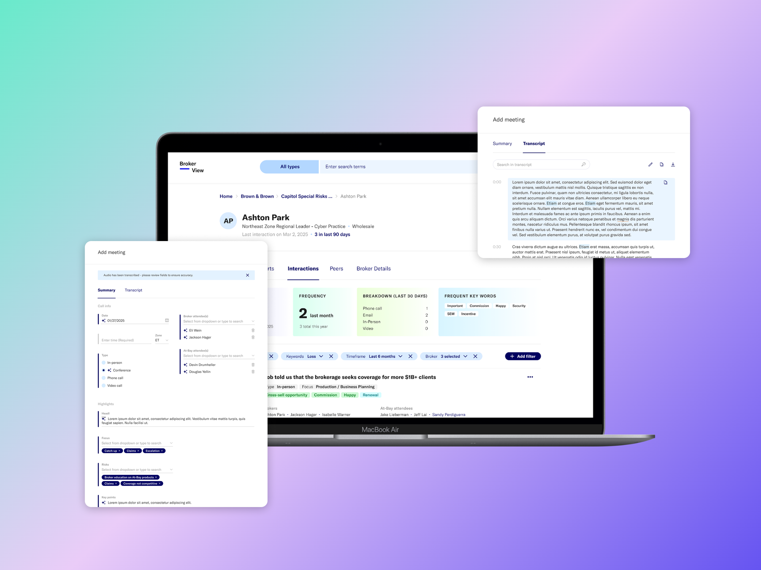 Designed an AI transcription feature that shifted how underwriters captured broker meeting notes — turning a lightweight note-taking tool into a richer data source that fed the broader broker intelligence platform.