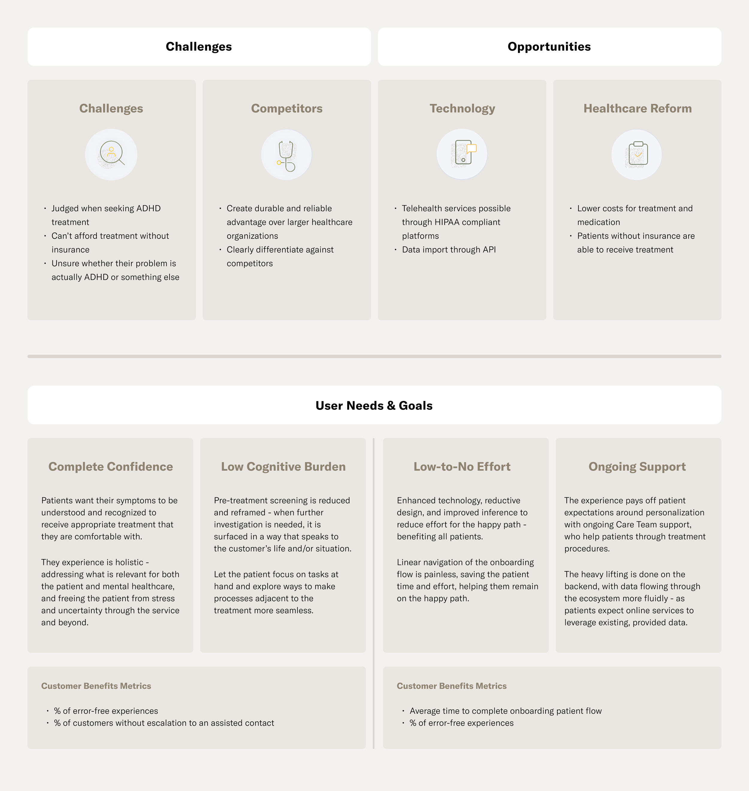 Through patient interviews, I uncovered what quality care meant to our users, helping shape a product roadmap that aligned clinical realities with a large, addressable market opportunity.