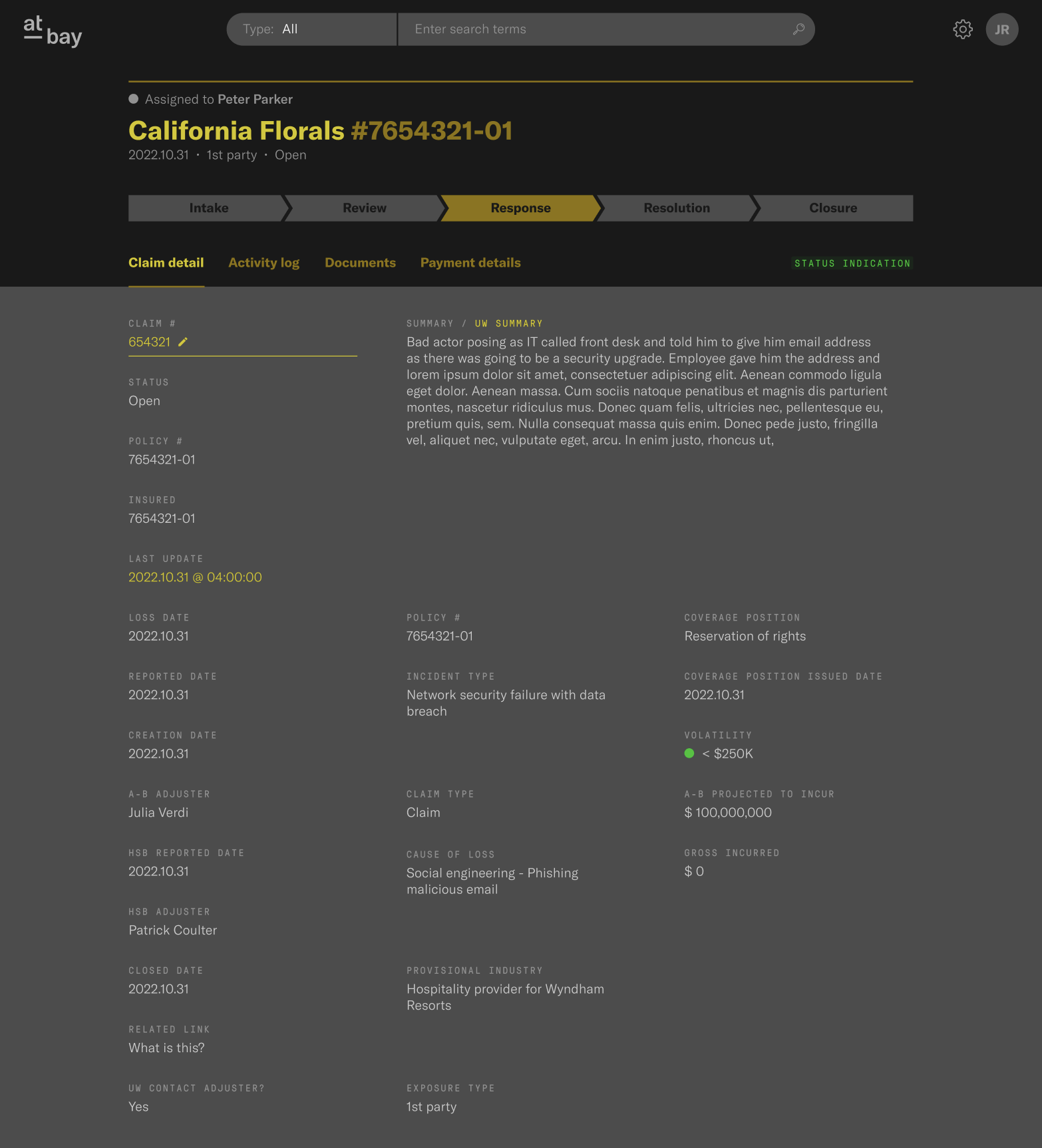 The workspace introduced automated intake, dynamic cyber research logs, integrated note capture, and streamlined invoice and payment handling—elevating efficiency and consistency across the claims process.